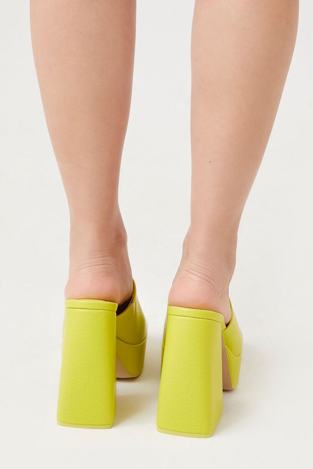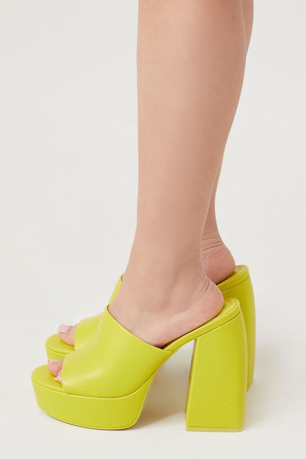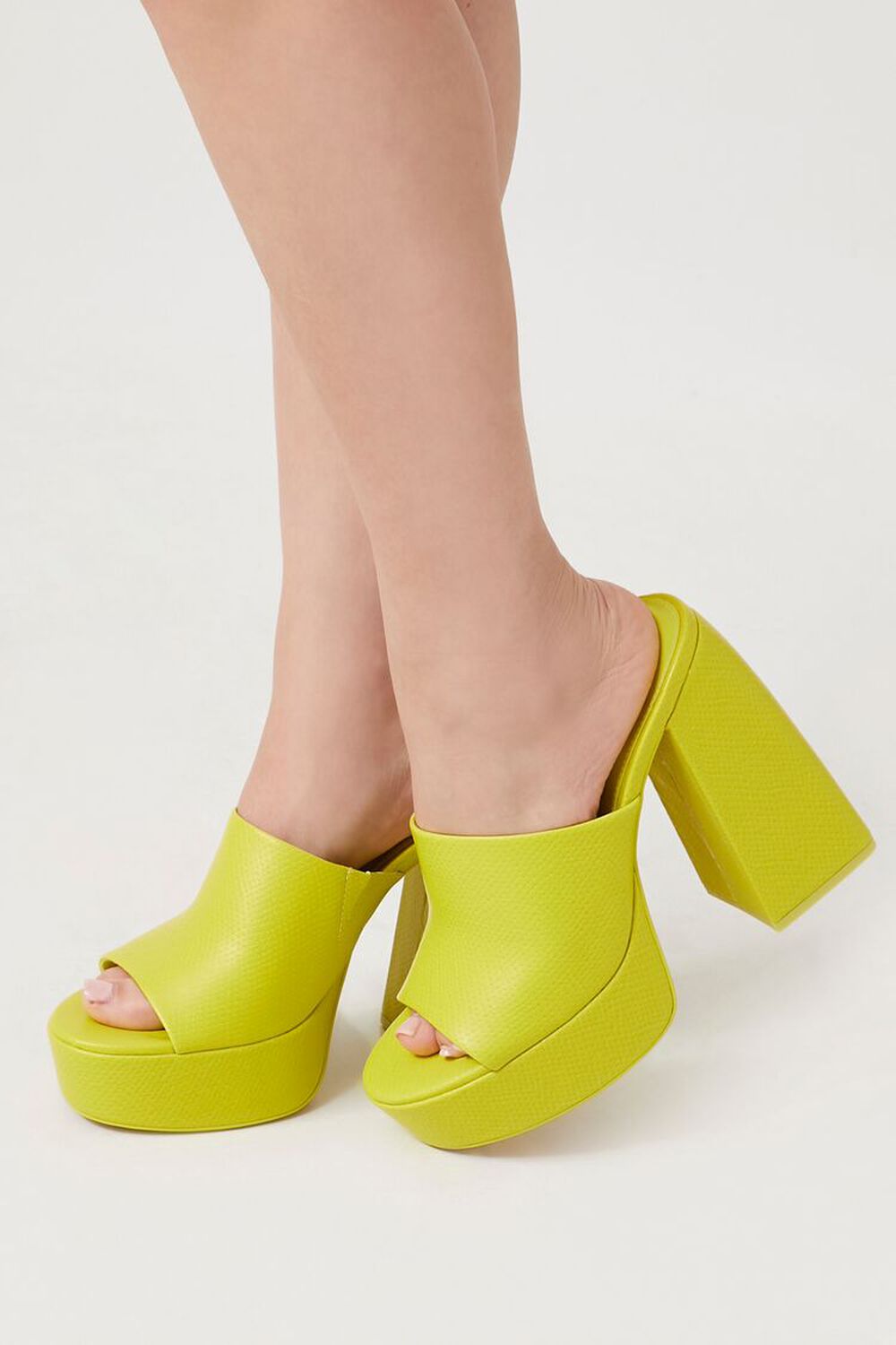 Elevate your style with these Faux Snakeskin Platform Block Green shoes. Made with textured faux snakeskin material, these platform heels add a bold touch to any outfit. Enjoy the added height and stability while standing out in these statement shoes.