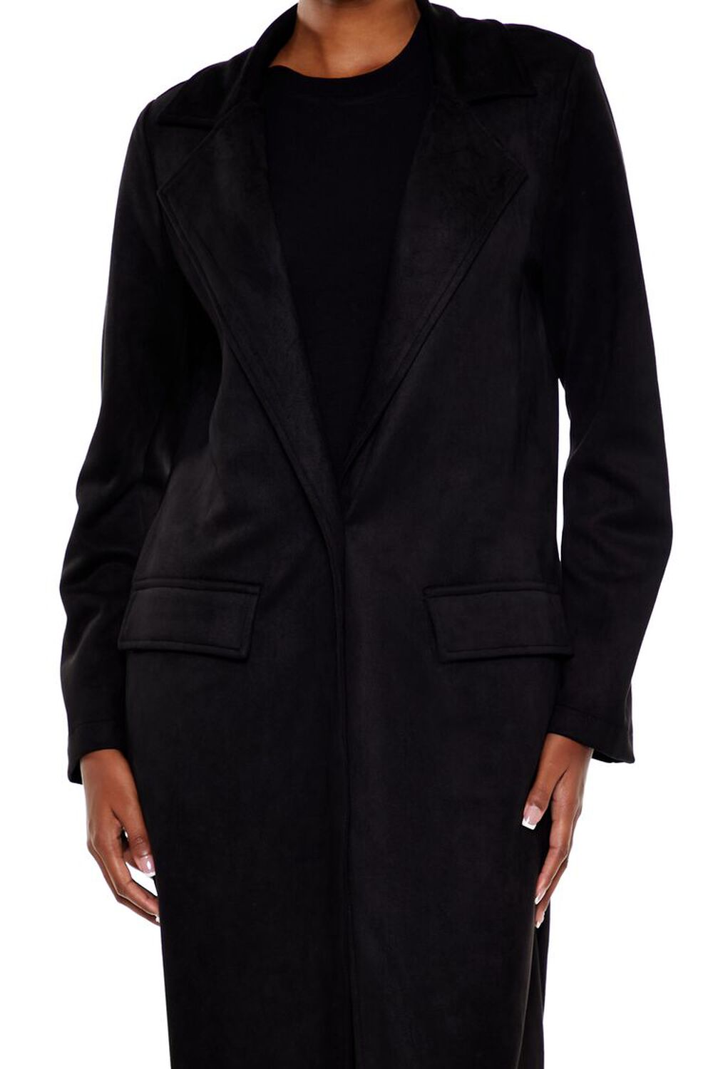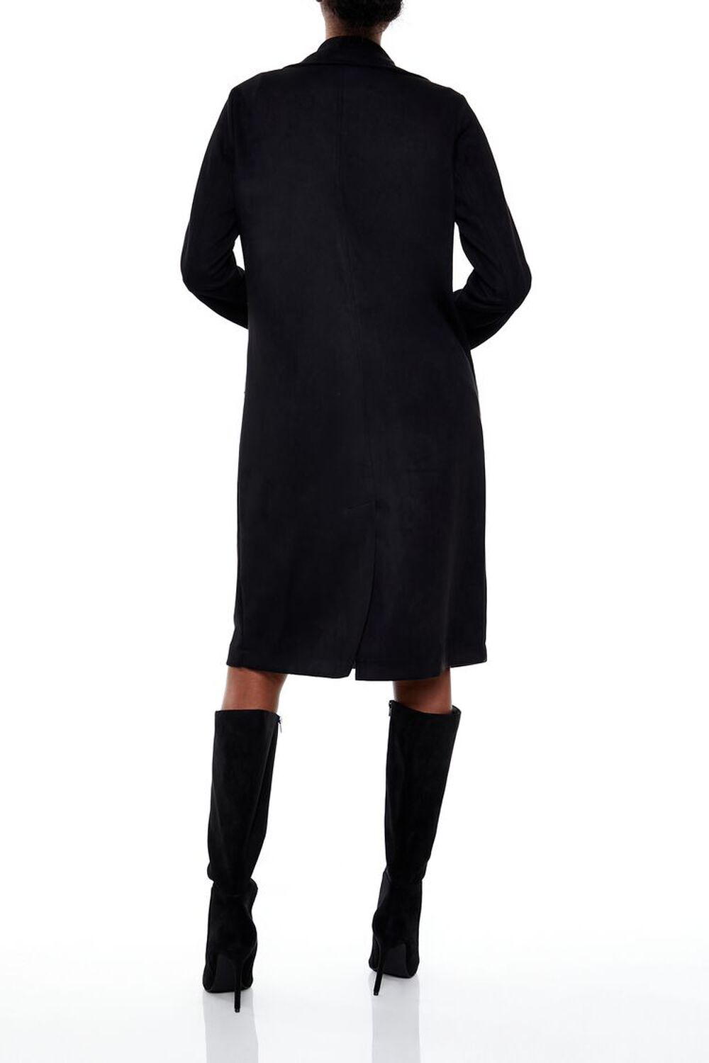 Faux Suede Longline Trench Coat Black