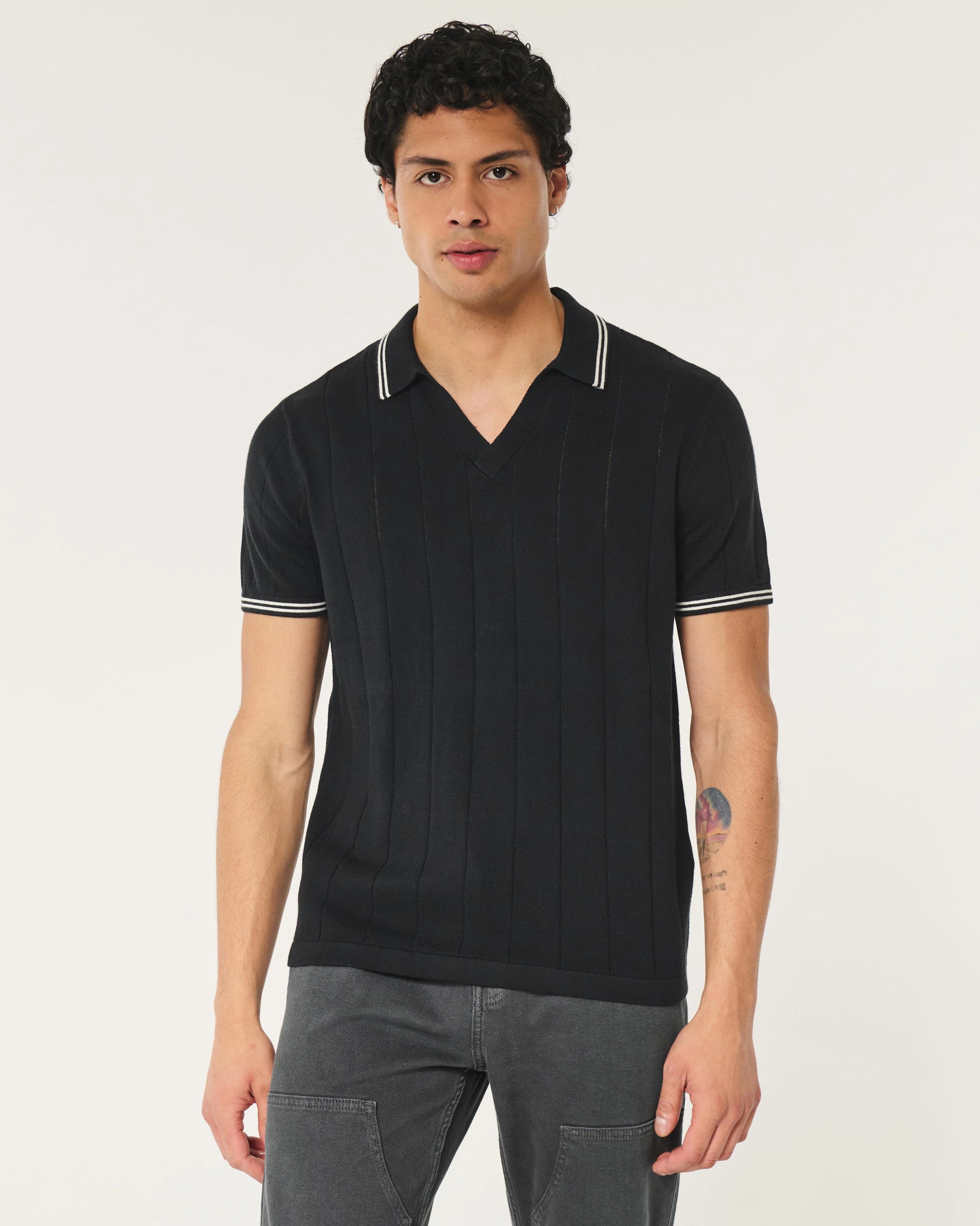 Tipped Sweater Polo Black